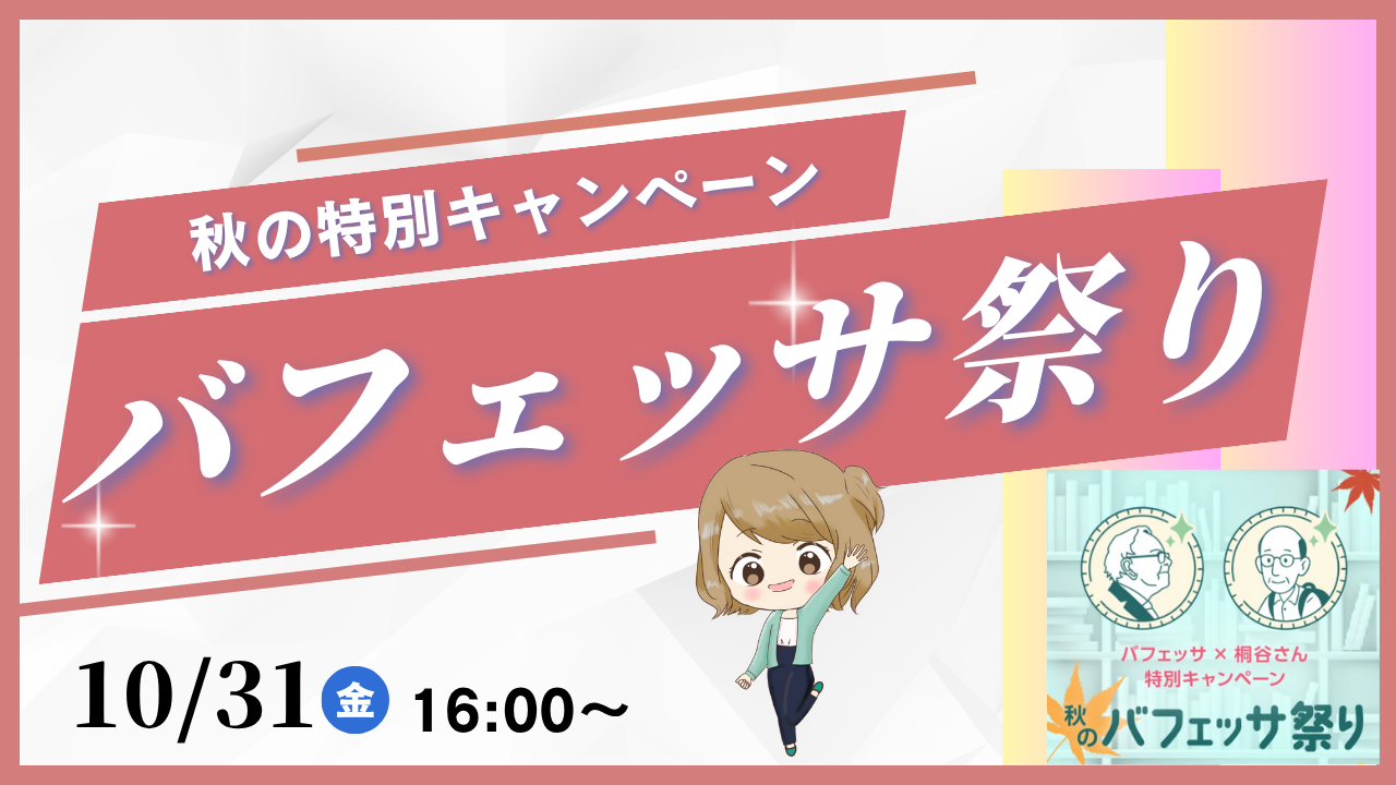 そんな人にこそおすすめしたい投資の基礎が楽しく学べるオンライン講座で、この秋超豪華な【秋のバフェッサ祭り】キャンペーンが開催中です!