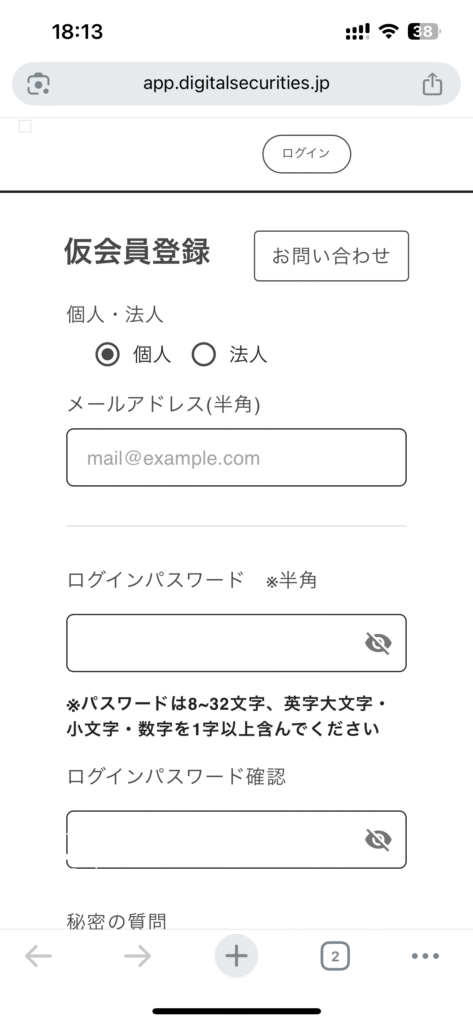 メールアドレス・パスワードなど、必要事項を入力して仮登録を行います。