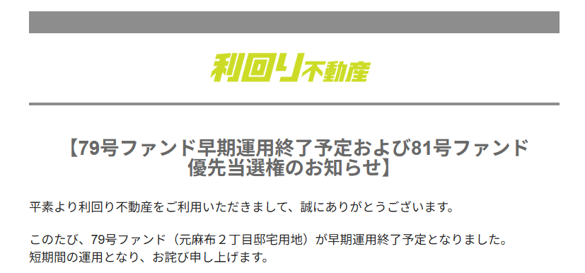 ふみゆも投資しています。冬のボーナスを投資したら、早期に運用終了のお知らせきました👇